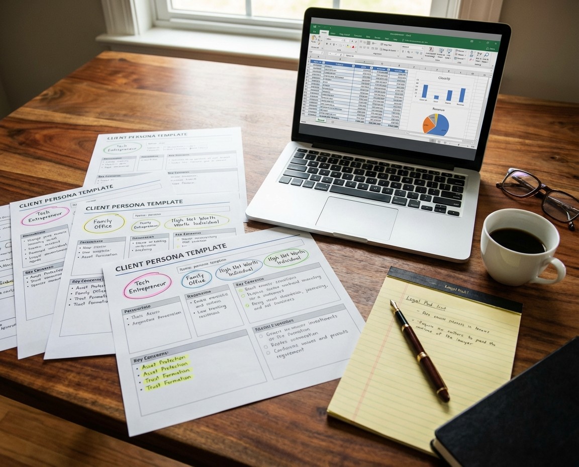 A client persona is a semi-fictional representation of your ideal client based on real data about existing clients combined with market research. Creating client personas for attorneys means documenting not just who your clients are, but how they think, what they value, and how they make purchasing decisions. A startup-focused practice defined their ideal client as "Founder, CEO, or Co-Founder in technology sectors including SaaS, FinTech, or Health Tech, at Seed to Series A stage with $500,000 to $5 million funding raised." This precision enables the firm to craft messaging about equity structures, investor negotiations, and startup-speed service delivery. Psychographic profiling adds crucial depth by identifying values, priorities, risk tolerance, decision-making speed, and communication preferences.